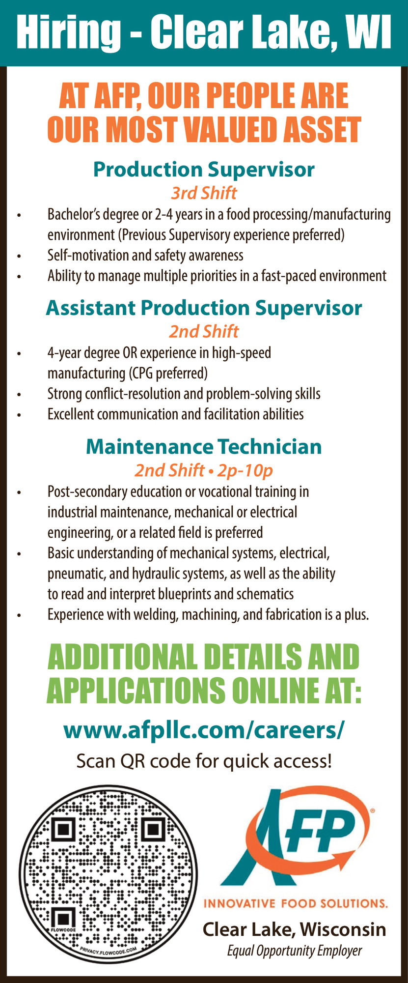 Feb 03, 2026. AFP, LLC Jobs from Amery Free Press