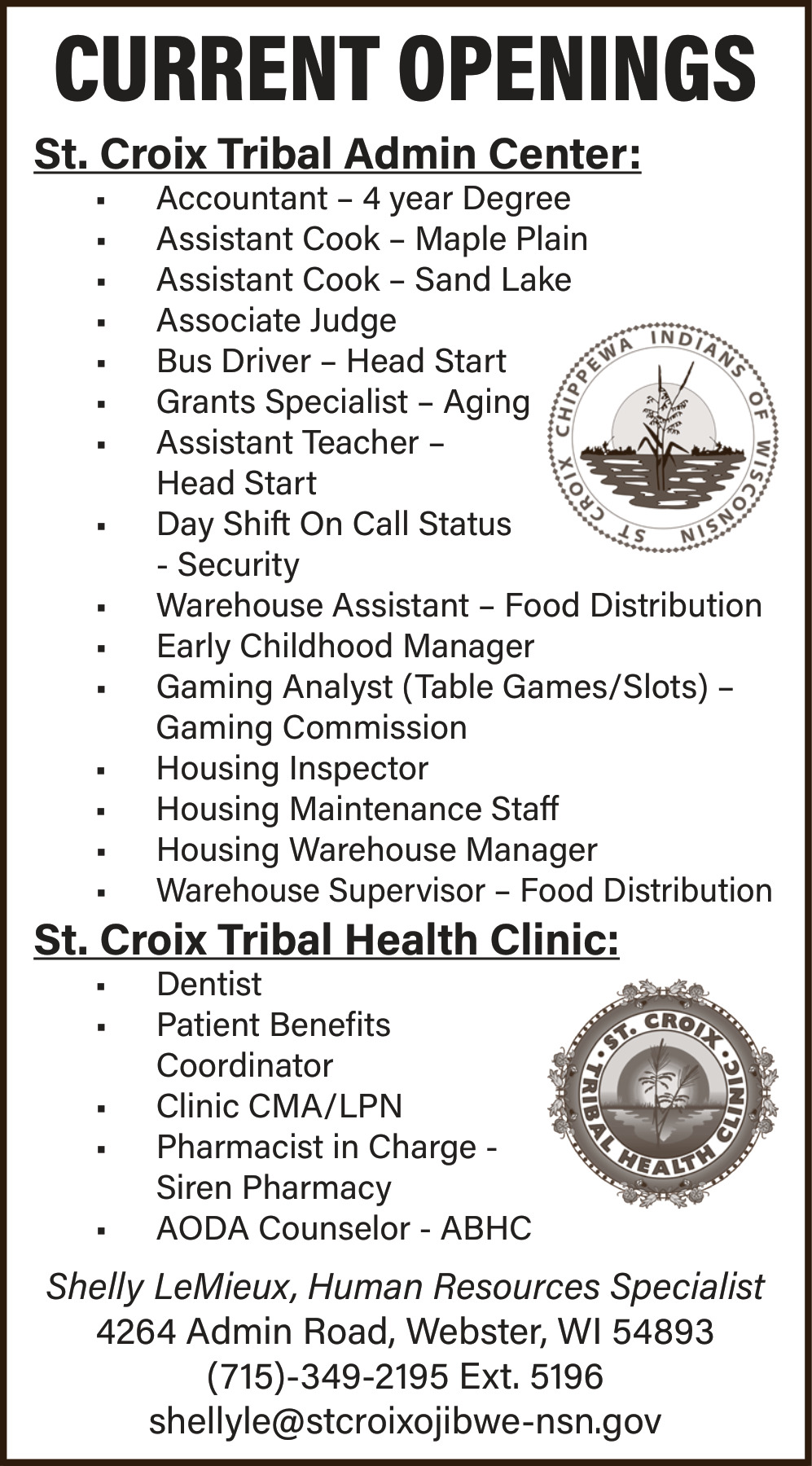 Mar 10, 2026. St. Croix Tribal Health Clinic Jobs from Burnett County Sentinel