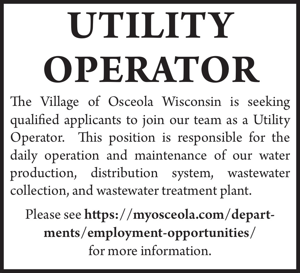 Mar 12, 2026. Village of Osceola Jobs from The Sun