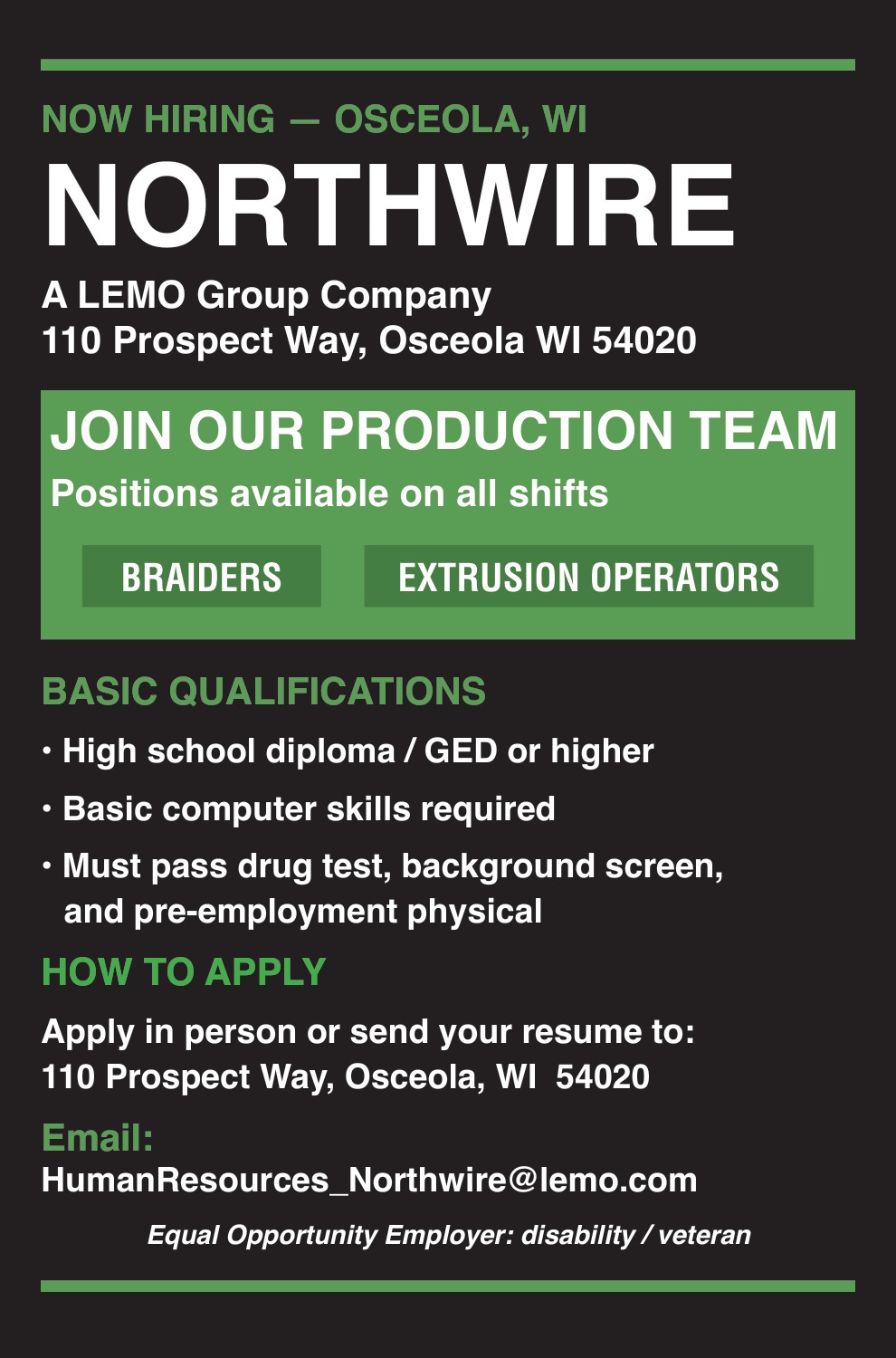 Jobs for Northwire Inc in Osceola, WI