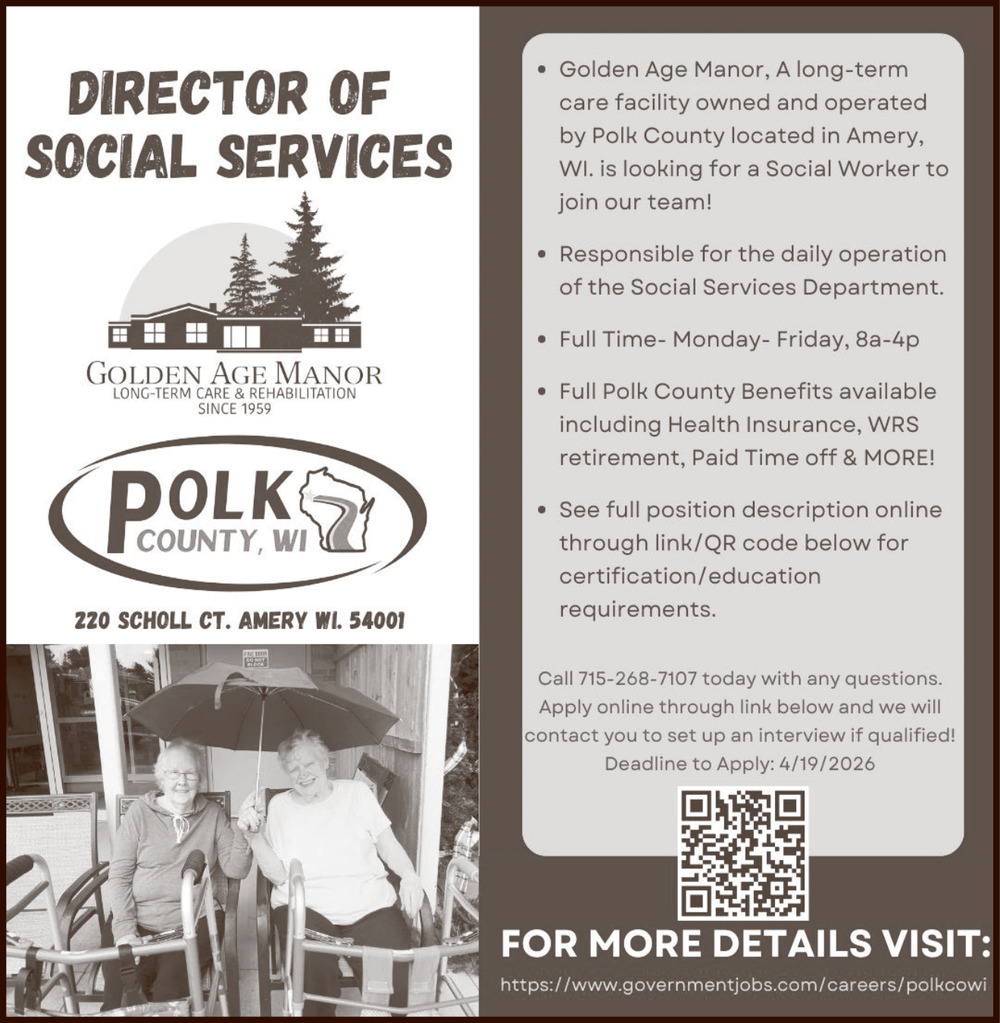 Apr 14, 2026. Golden Age Manor Jobs from Amery Free Press
