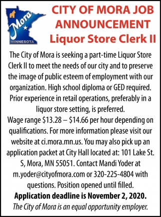 • Liquor Store Manager in Mora, MN