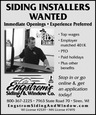 Mar 09, 2021. Engstrom's Siding & Window Co. Jobs from Burnett County Sentinel