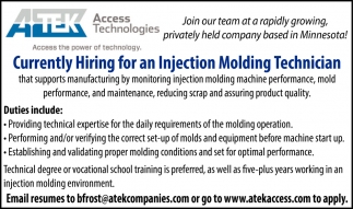 • Injection Molding Technician in Brainerd, MN