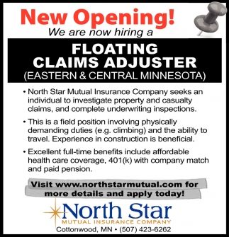 May 24, 2021. North Star Mutual Insurance Company Jobs from Isanti Chisago County Star