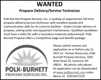 Jul 14, 2021. Polk-Burnett Propane Services, Inc. Jobs from Burnett County Sentinel