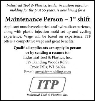 Jobs for Industrial Tool & Plastics in Saint Croix Falls, WI