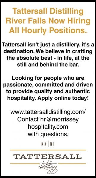 Oct 26, 2021. Tattersall Distilling Jobs from White Bear Press