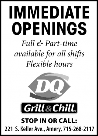 May 31, 2022. Dairy Queen - Amery Jobs from Amery Free Press