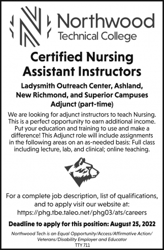 Aug 09, 2022. Northwood Technical College Jobs from Burnett County Sentinel
