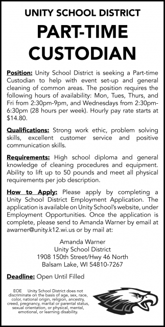 Jun 15, 2020. Unity School District Jobs from Amery Free Press
