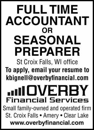 Dec 27, 2022. Overby Financial Services Jobs from Amery Free Press
