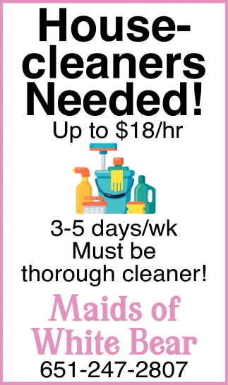 Mar 06, 2023. Maids Of White Bear Jobs from White Bear Press