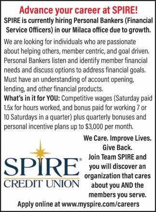 May 01, 2023. SPIRE Credit Union Jobs from Kanabec County Times