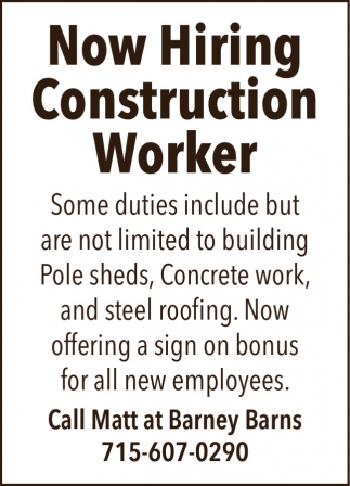 Jun 12, 2023. Barney Barns Jobs from Amery Free Press