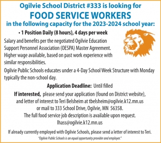 Sep 11, 2023. Ogilvie School District #333 Jobs from Kanabec County Times