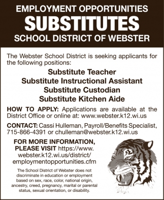 Nov 07, 2023. School District Of Webster Jobs from Burnett County Sentinel