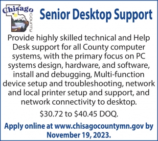 • Senior Desktop Support Job in Center City, MN