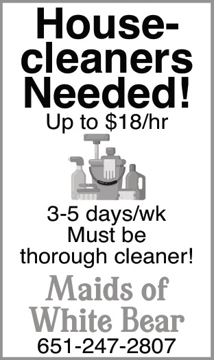 Mar 19, 2024. Maids Of White Bear Jobs from White Bear Press