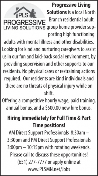 May 10, 2024. Progressive Living Solutions Jobs from Isanti Chisago County Star
