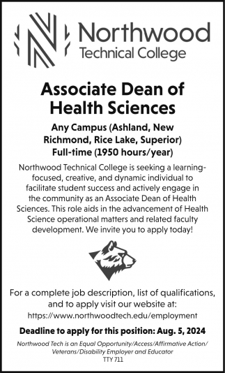 Jul 29, 2024. Northwood Technical College Jobs from Amery Free Press