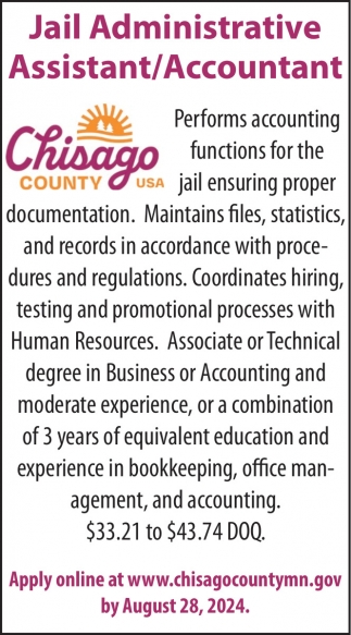 Aug 12, 2024. Chisago County Jobs from Isanti Chisago County Star