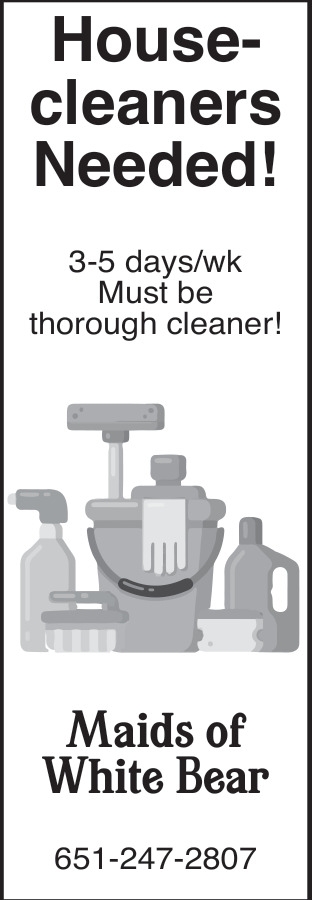 Sep 17, 2024. Maids Of White Bear Jobs from White Bear Press