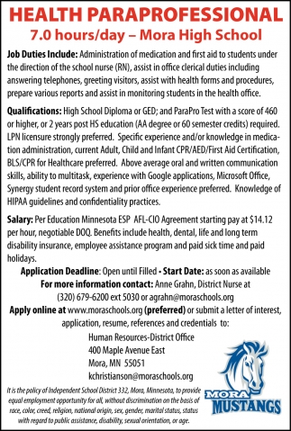 • Health Paraprofessional in Mora, MN