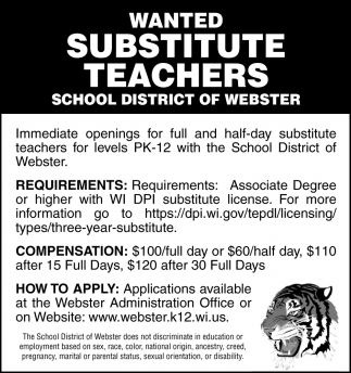 • Substitute Teachers in Webster, WI