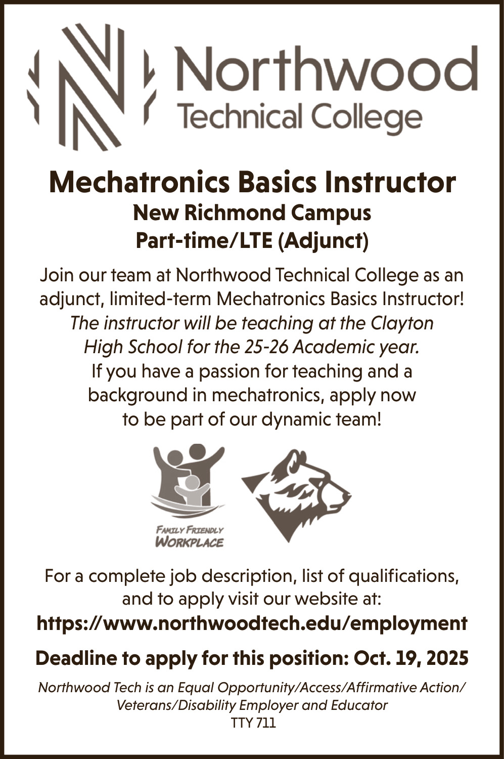 • Mechatronics Basics Instructor Job Opening in Rice Lake, WI
