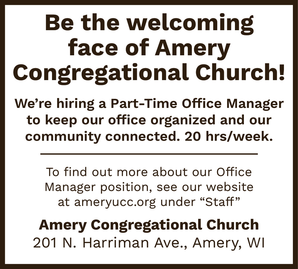 Oct 21, 2025. Amery Congregational Church UCC Jobs from Amery Free Press