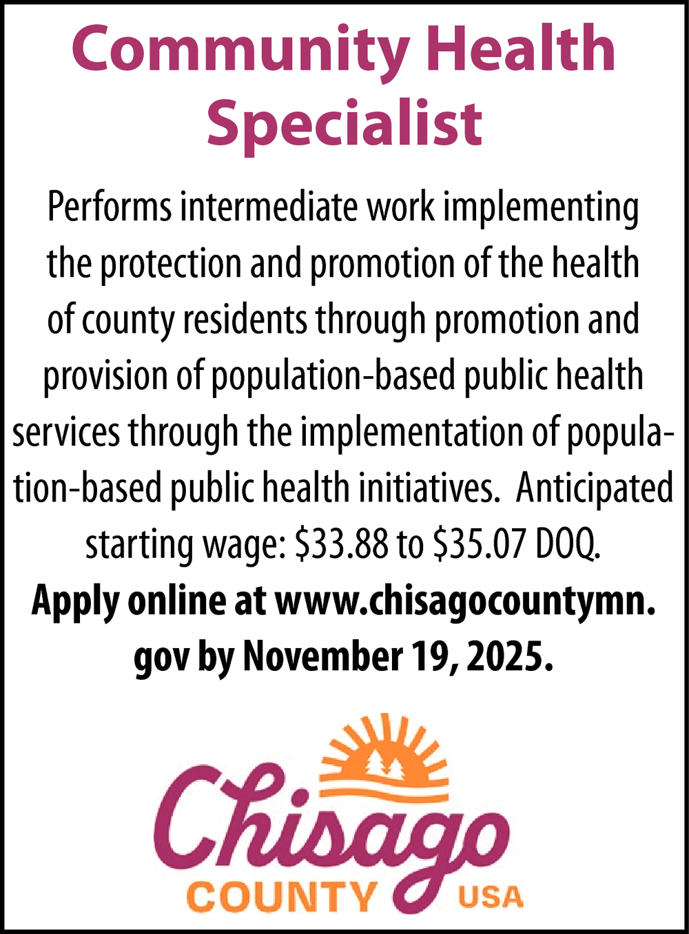 To advertise, call 763-250-9159 or email starclass@countystar.com