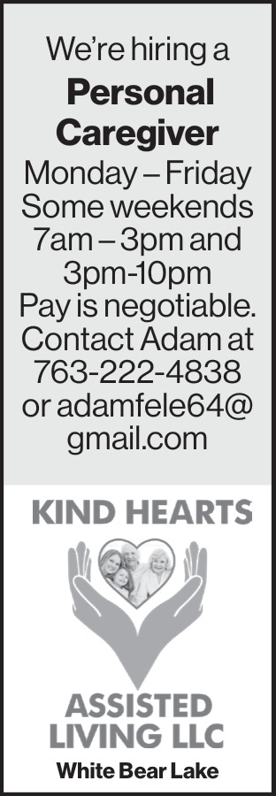 Dec 18, 2025. Kind Hearts Assisted Living, LLC Jobs from White Bear Press