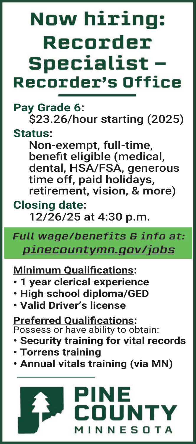 To advertise, call 763-250-9159 or email starclass@countystar.com