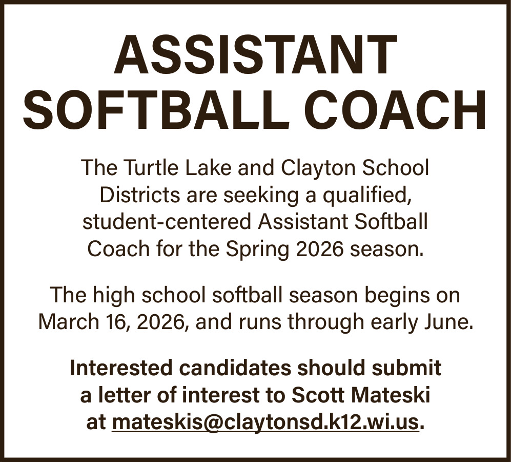Jan 13, 2026. Turtle Lake and Clayton School Districts Jobs from Amery Free Press